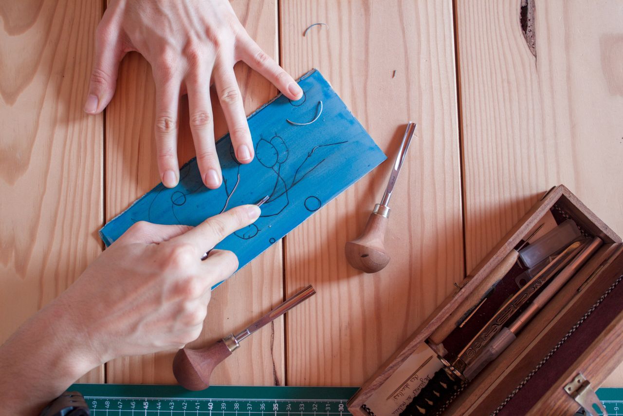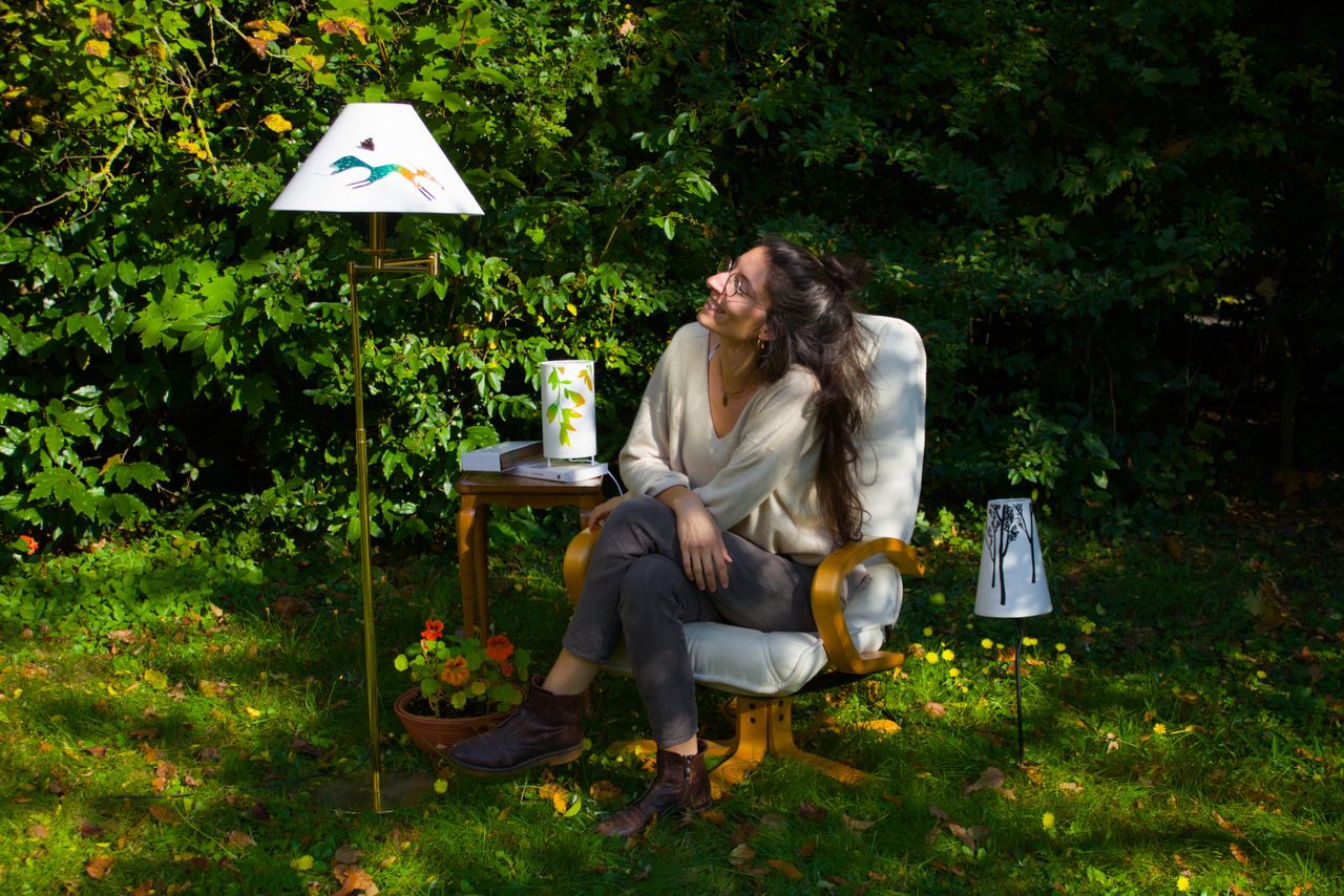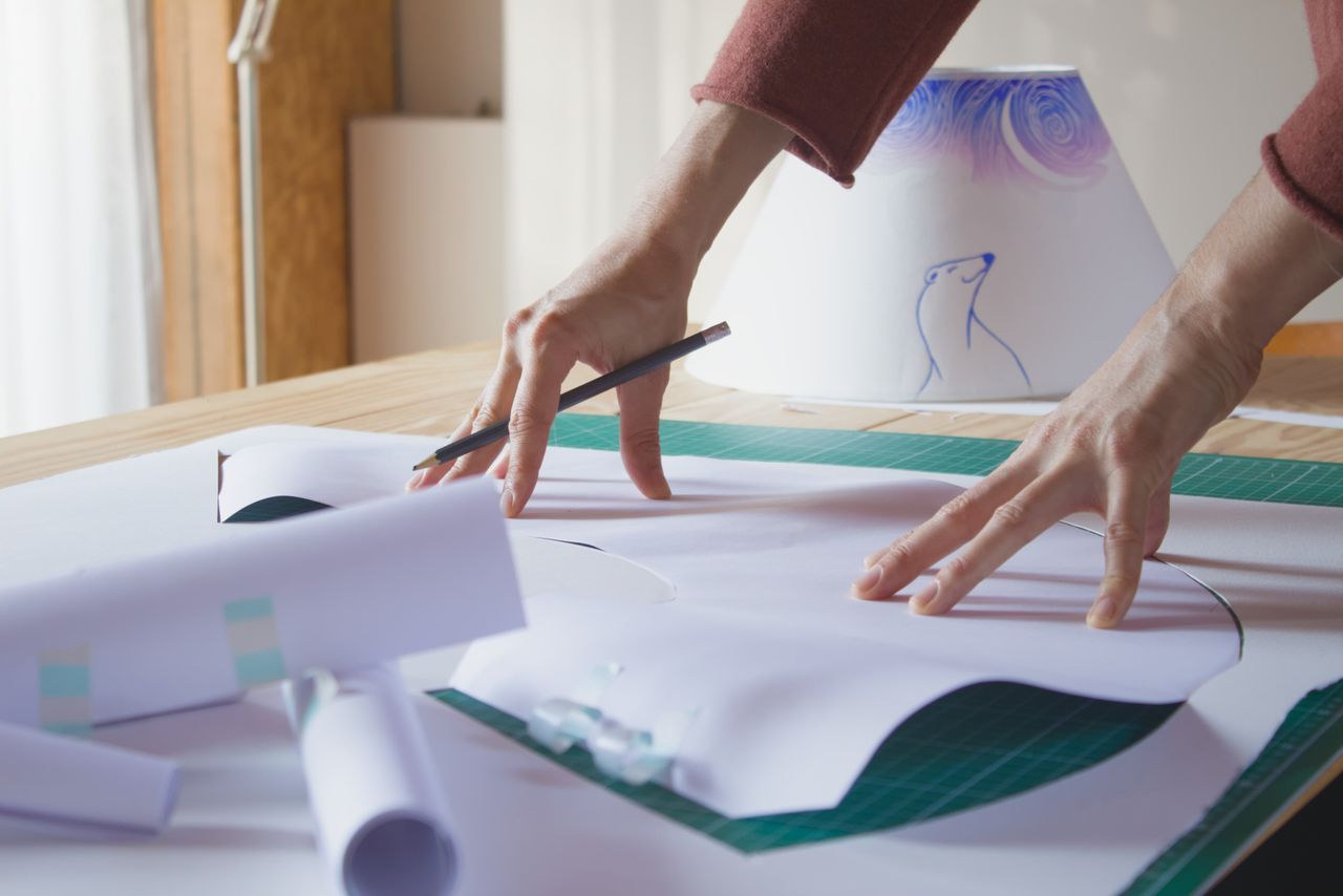 Mes abat-jours sont fait-main, avec toute la poésie et la bienveillance dont je suis capable. Fait-main, ça veut dire que tout se joue dans mon atelier depuis les dessins, la gravure jusqu’à l’impression et le montage des luminaires.